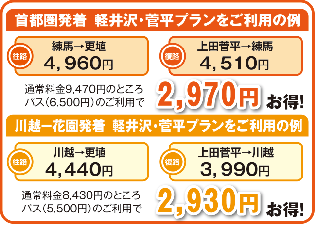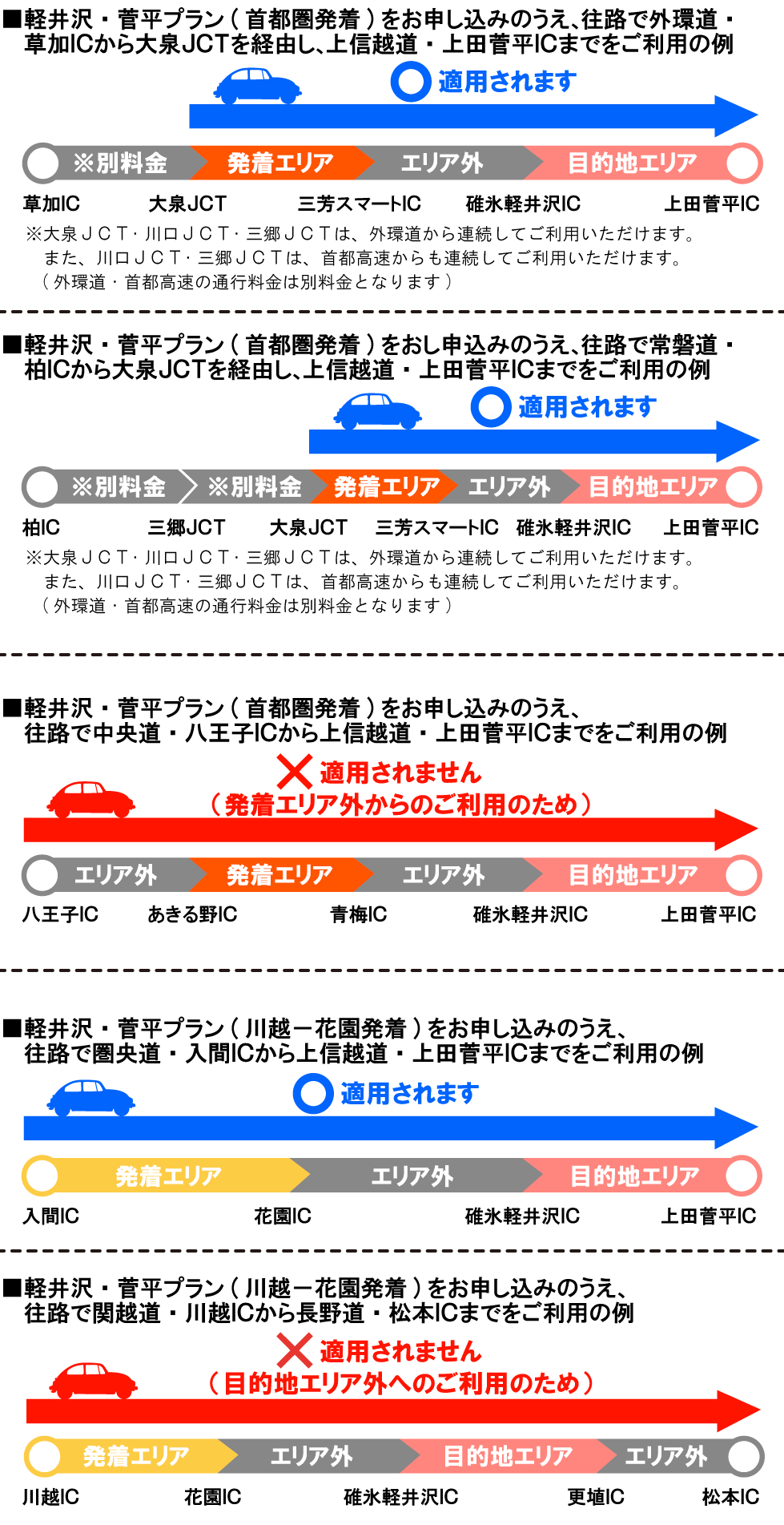 「軽井沢・菅平プラン(首都圏発着)」の走行例(普通車)