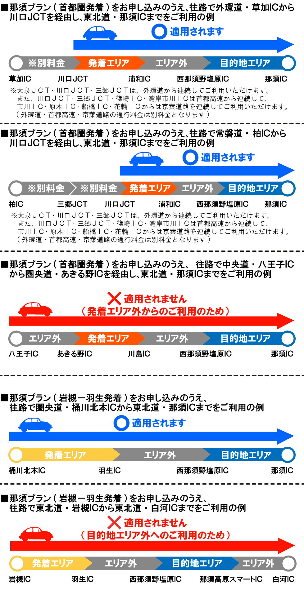 「那須プラン(首都圏発着)」の走行例(普通車)