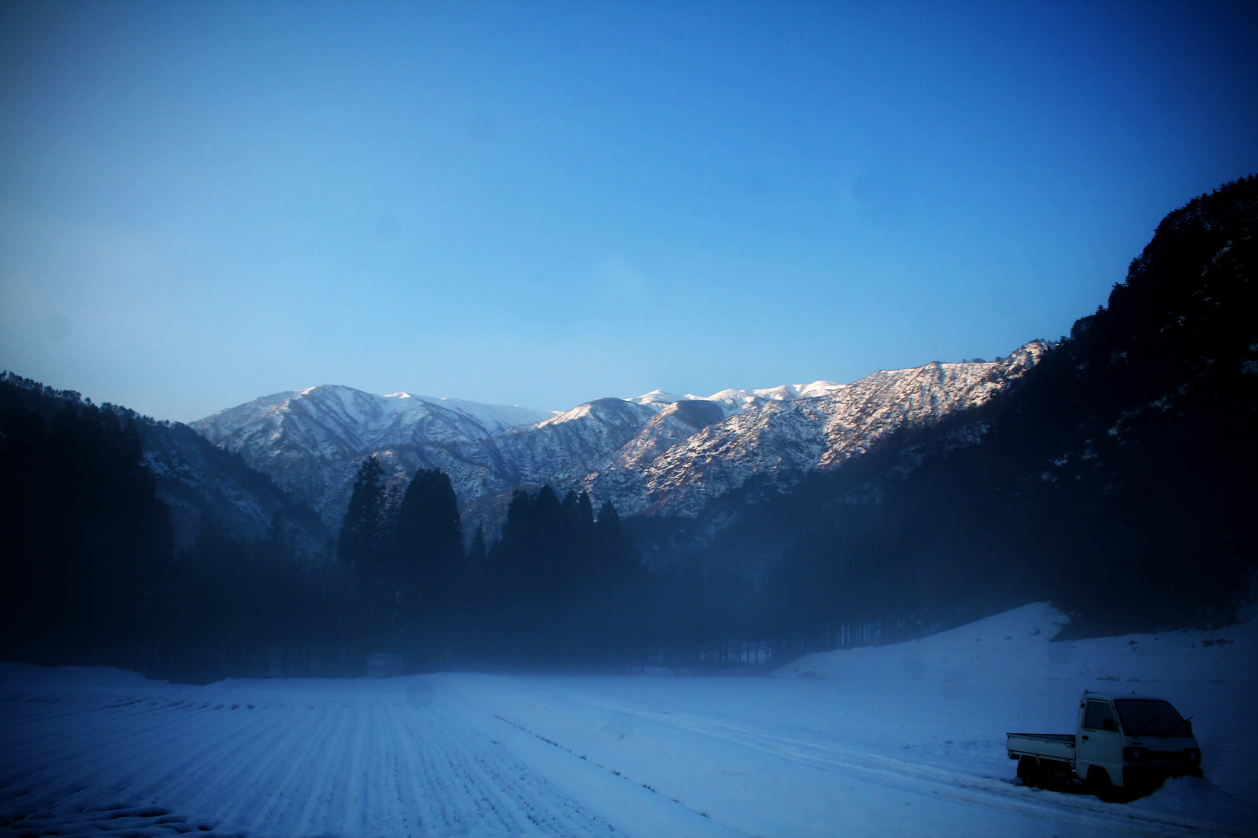 マタギの郷までおよそ1時間半のドライブ。マタギの頭領に会える! と朝から興奮しっ放しの僕は鼻息荒く車を走らせていた。