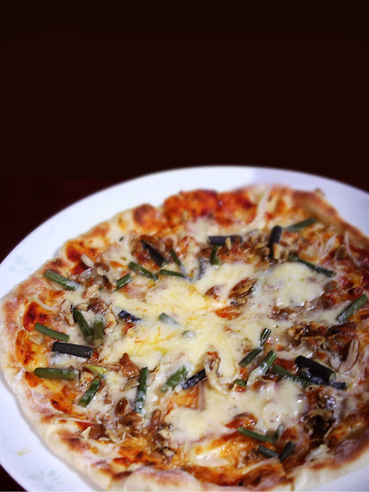 塩麹に漬けた山形地鶏は、歯応えがあって味が濃厚! 地元のワラビ&くるみをたっぷり載せた厚焼きピザは、女将さん自慢の逸品というだけあって、ピザ専門店レベルの味わいだ。