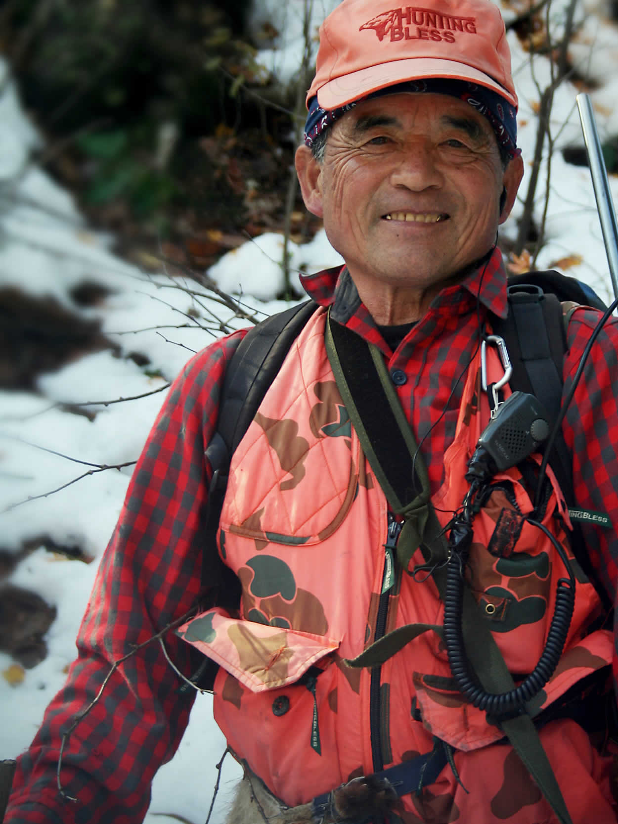 マタギは、50年前は30人ぐらいいたけど、今、鉄砲を持ってるのは14名。昔は大勢で狩に出たけど、今は仕事や生活もあるから、一緒に狩をするにしても6、7人、多くて10人ぐらいかな」