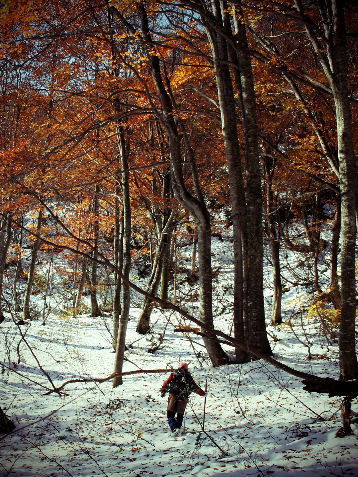 しかも、今度は登りも下りもあって、僕との距離は開くばかり。こうして何度か姿を見失いそうになりながら、冒頭に記したように、「熊の足跡を追う舟山さんの足跡」を辿ることになったのだ。