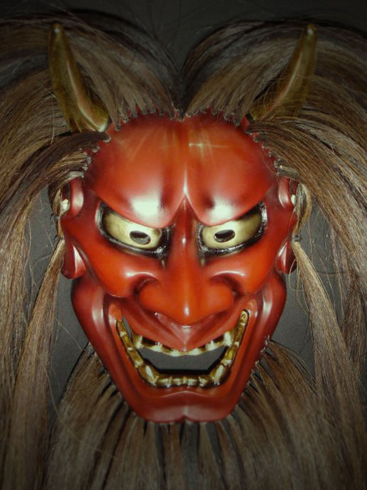 真っ赤な顔に、二本の角、鋭い牙に、怒りに燃えた大きな眼……。