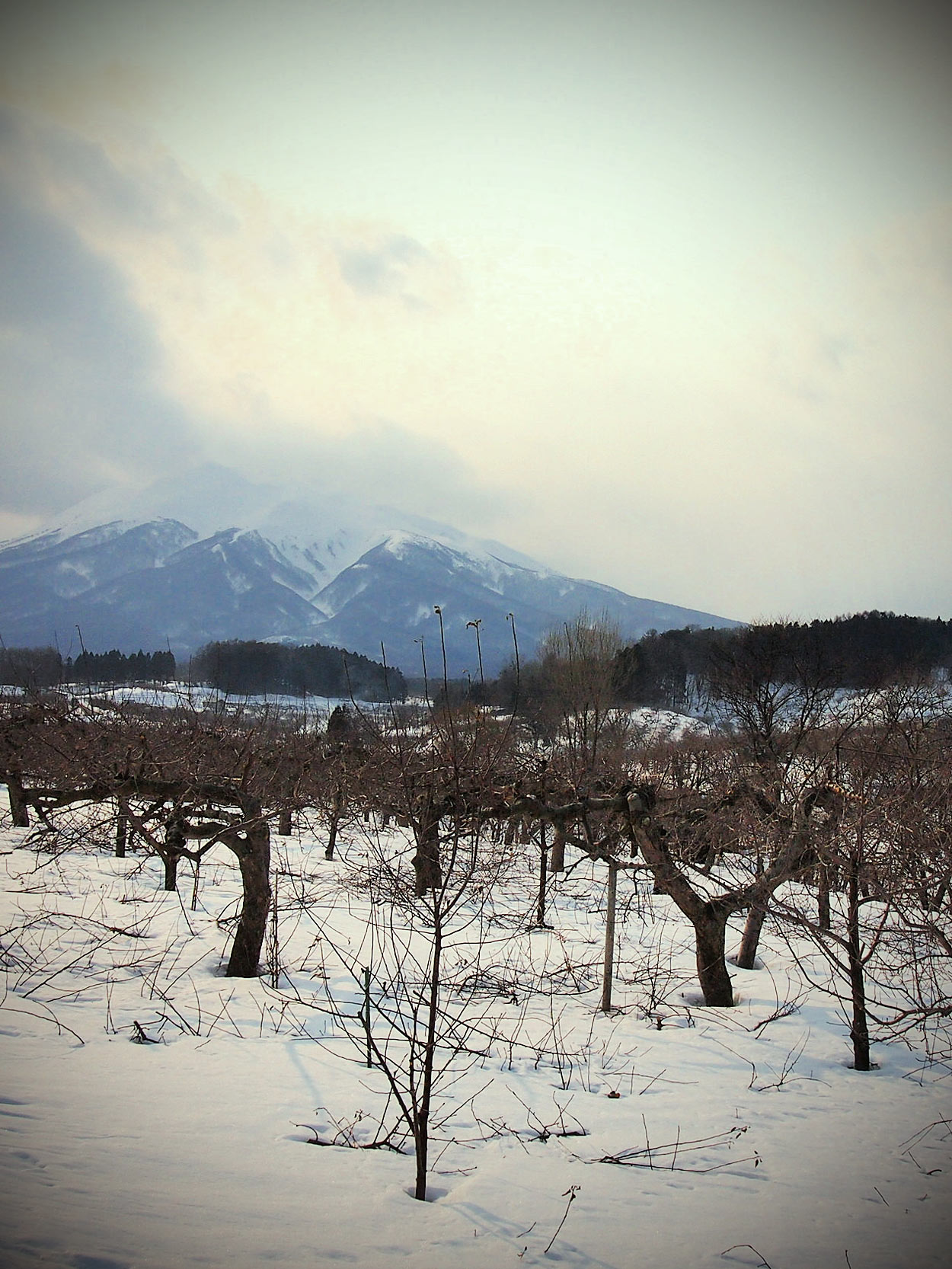 津軽弁の会話に耳をすませながら40分ほど揺れに身をまかせていると、景色は雪の残るリンゴ畑に移ろう。後ろにそびえる岩木山に目を奪われたら、そこはもう「鬼沢」だ。