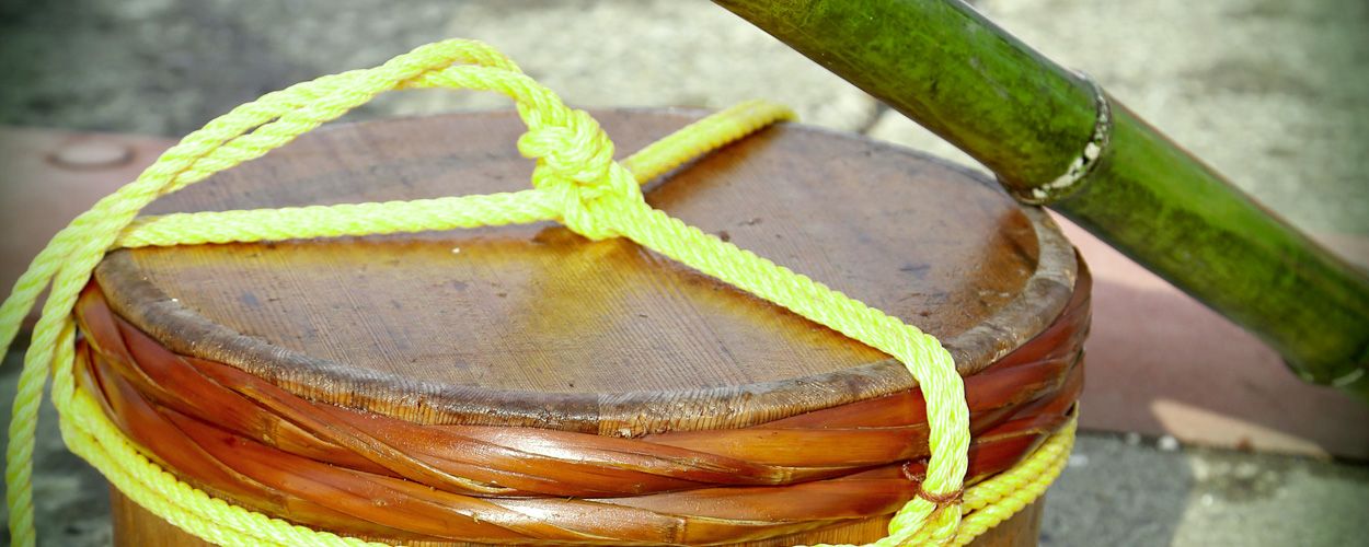 夜泳の舞台とは別の入り江に、水着に着替えたAMAメンバーが集合した。皆心なしか緊張した面持ちだ。そこへ、竹の棒と桶が配られる。竹の棒は、本番では先端に布を詰め、火をともし松明になる。両面を板で塞がれた隙間のない桶は、抱えて泳ぐことで浮き輪代わりに使うという。