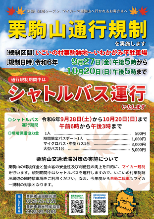 毎年、紅葉時期に一番お問合せの多い「栗駒山」の交通規制をお知らせいたします。