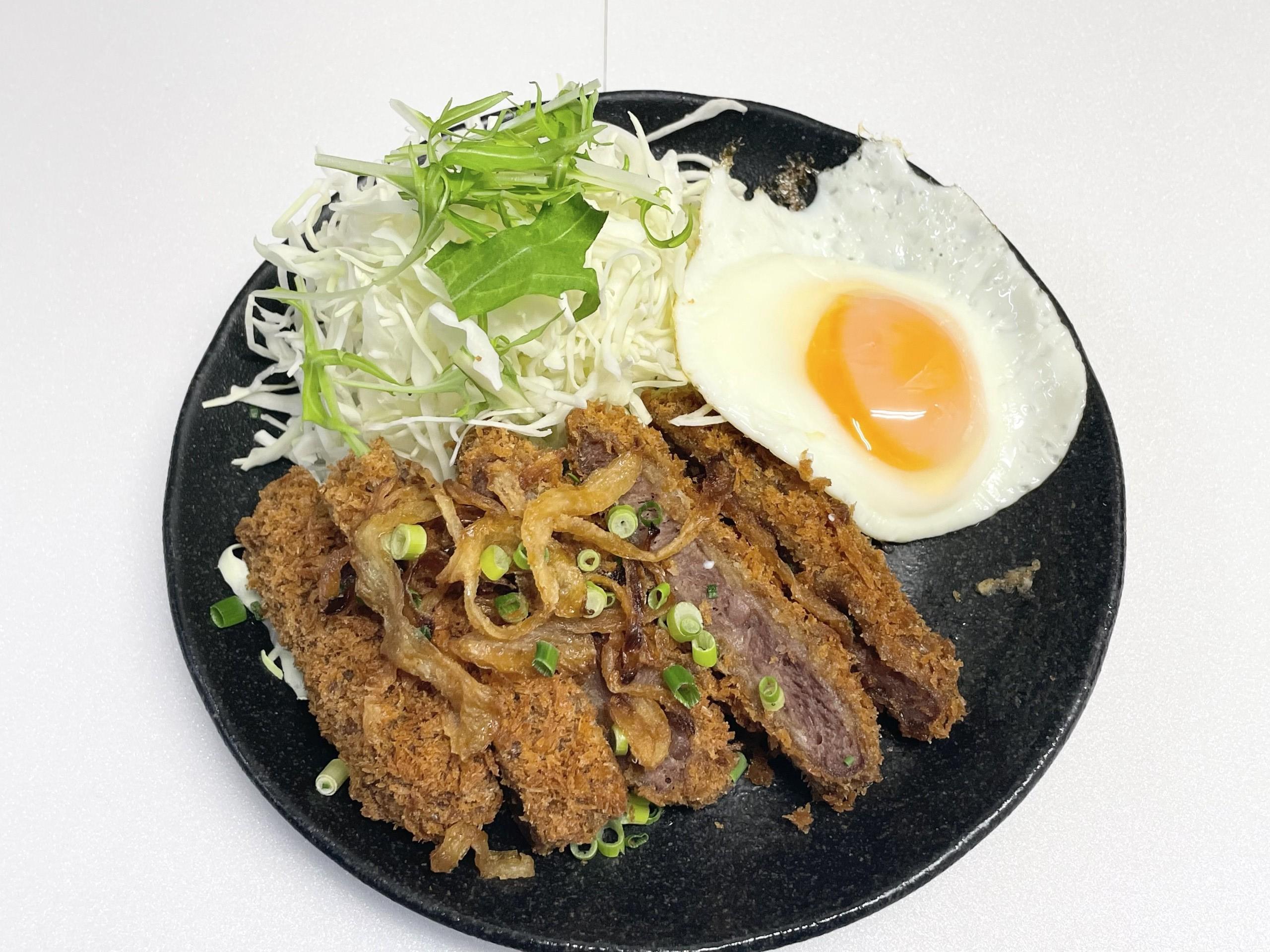 目玉焼きをご飯に乗せたり、牛かつをトロッとした黄身に絡めて