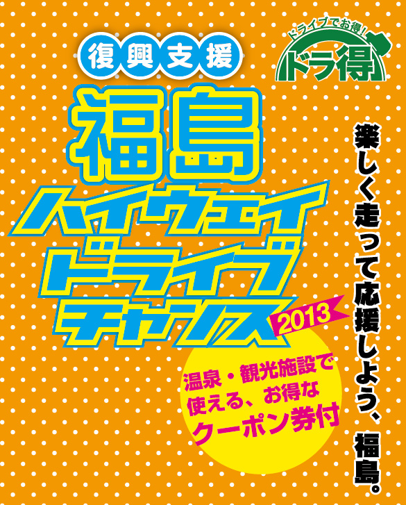 高速道路を利用して、福島県へ足を運んで温泉や観光施設を楽しんでいただけるよう「復興支援!福島ハイウェイドライブチャンス2013」を実施しています。