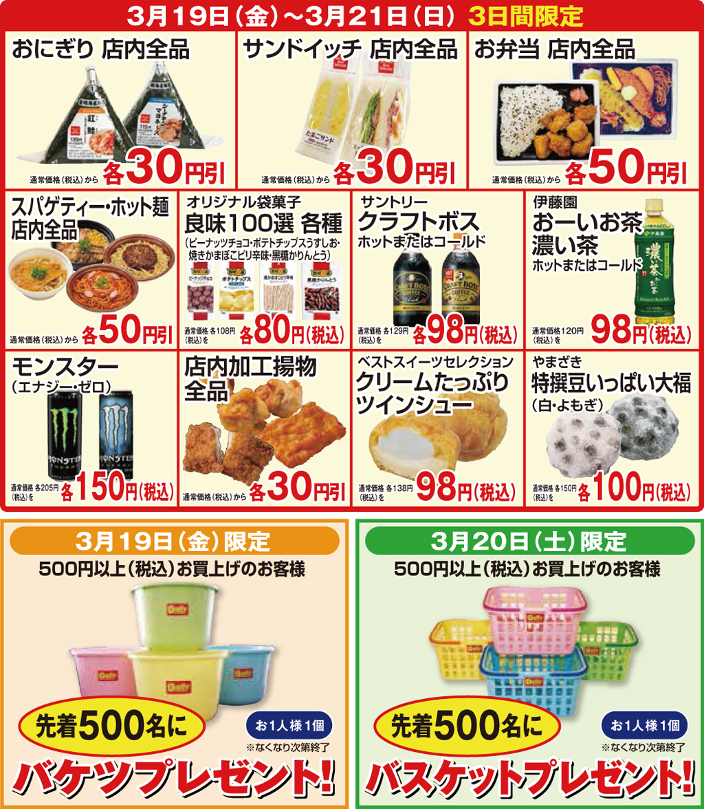 ★「通常価格」とはセール終了後の販売価格のことです。 ★本チラシ掲載商品の税込価格は全てお持ち帰り時の価格です。★掲載の商品は豊富に用意してございますが、万一品切れの際はご容赦下さい。★写真・イラストはイメージです。パッケージ等、変更となる場合がございます。