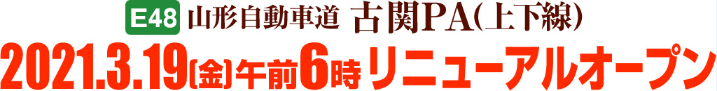 3月19日(金)午前6時に【E48】山形自動車道 古関PA(上下線)にコンビニエンスストア「デイリーヤマザキ」をオープンいたします。