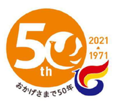 このロゴマークに使われている青・赤・黄色のフェニックス(=不死鳥)は初代ロゴマークです。「初代フェニックス」が、50年の時を経て、コーポレートカラーであり、皆様にも馴染みがあるオレンジ色の「現代のフェニックス」へと変化を遂げてきたことを表しています。