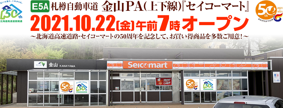 2021年10月22日(金)午前7時に札樽自動車道 金山PA(上下線)に24時間営業のコンビニエンスストア「セイコーマート」をオープンします。