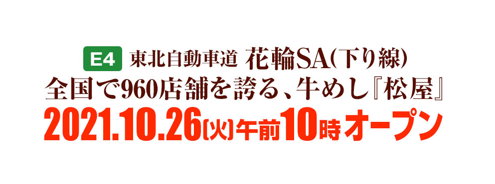 【E4】東北自動車道 花輪SA(下り線)に全国で960店舗を誇る、牛めし「松屋」がオープン