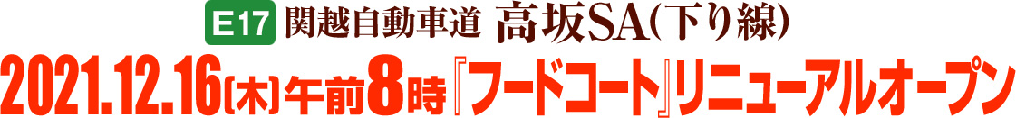 【E17】関越自動車道 高坂SA(下り線)のフードコートがリニューアルします!