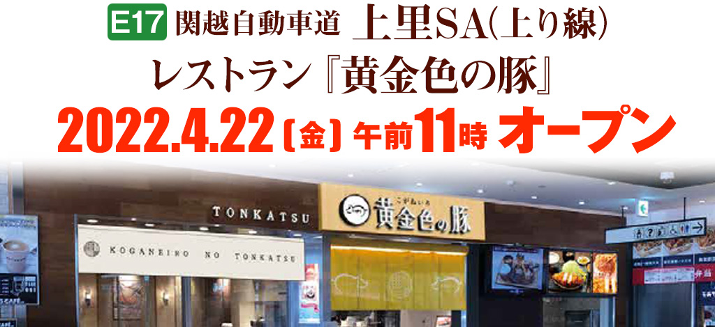 【E17】関越自動車道 上里SA(上り線)におきまして、レストラン『黄金色の豚』がオープンいたします!