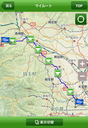 マイルートを登録していると、地図上でマイルートを確認ができ、渋滞予測と合わせてご確認いただけます。