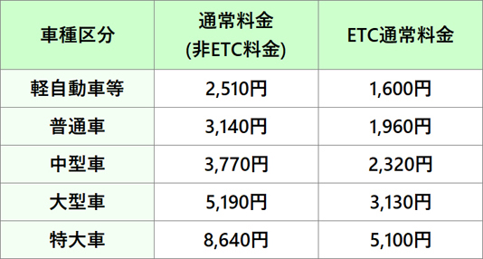 • 障害者割引適用後料金は、通常料金(非ETC料金)またはETC通常料金の半額となります。