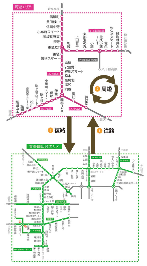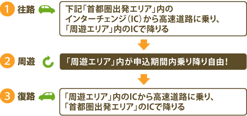 ※往路走行の要件を満たした時点で、本商品が適用となります。往路走行をされる前の周遊走行及び復路走行はフリーパスの対象外となります。
