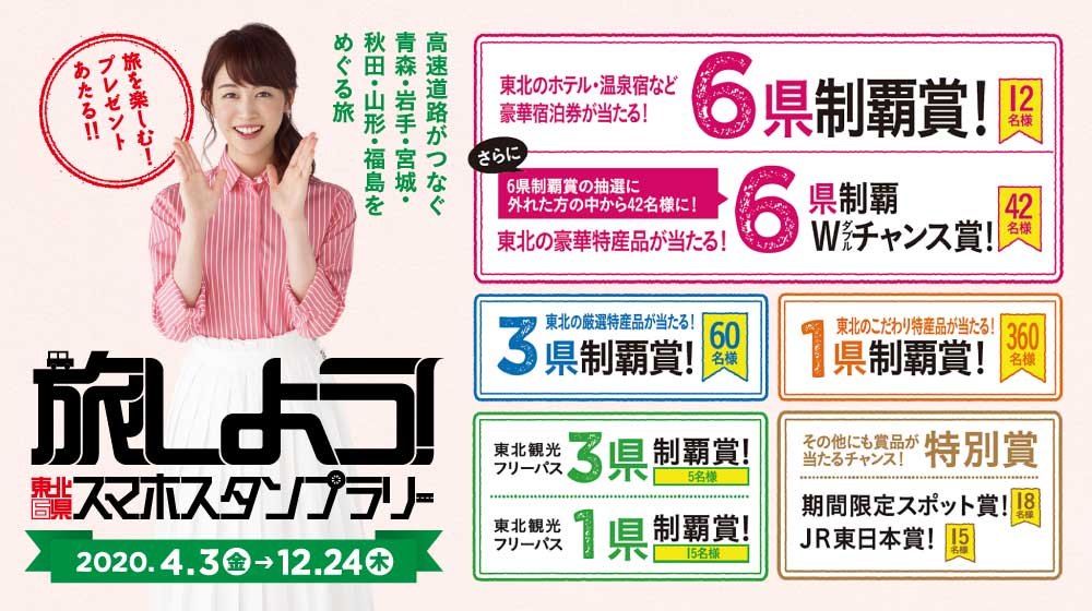 2020東北観光フリーパスをご利用後、アンケートにお答えいただくと抽選で東北各地の素敵なプレゼントが当たります!