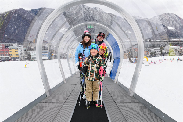 全長100mのフード付きスノーエスカレーターで、新しいビギナースキーのスタイルを提供!