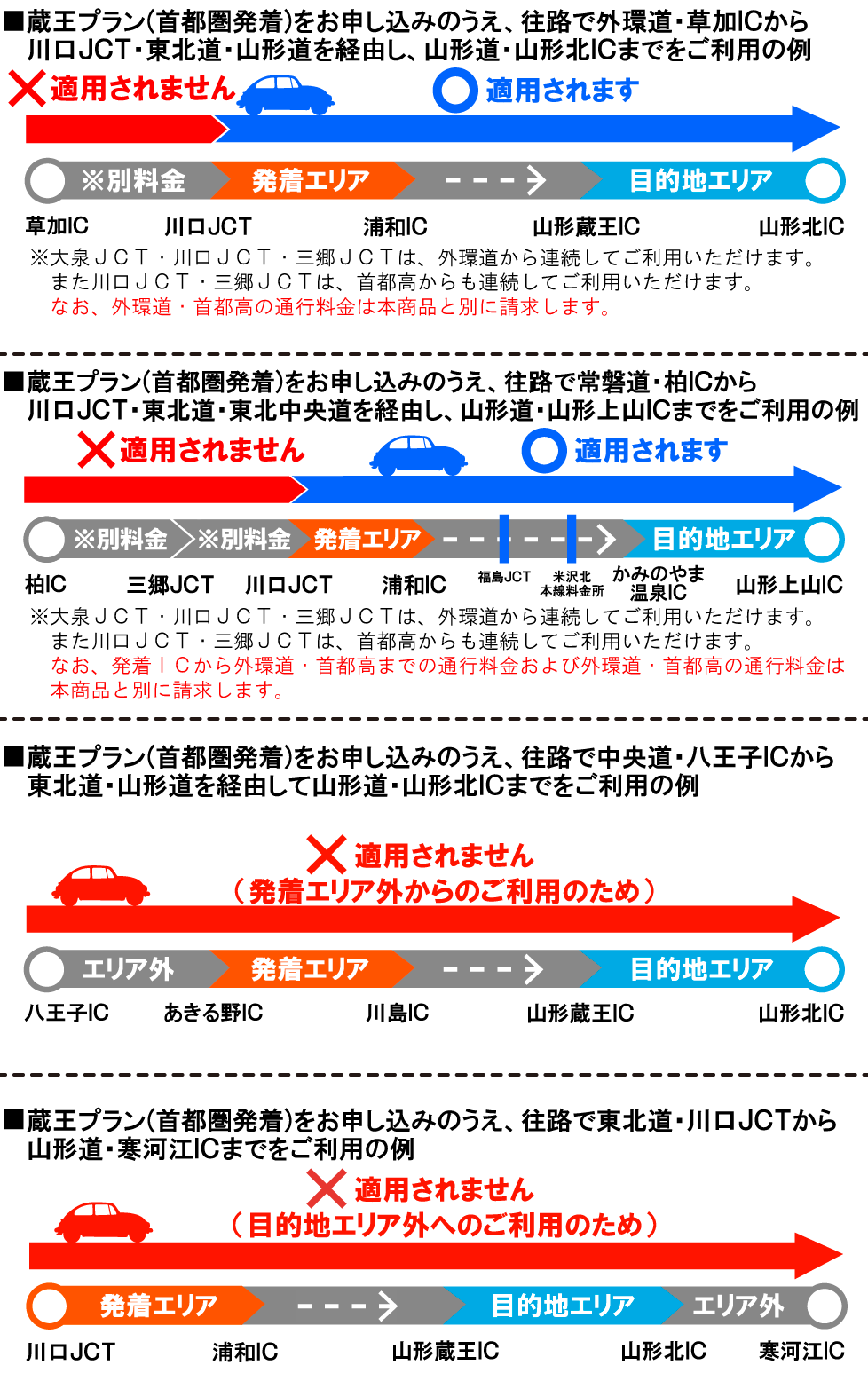 「蔵王プラン(首都圏発着)」のご注意いただきたい走行例(普通車)