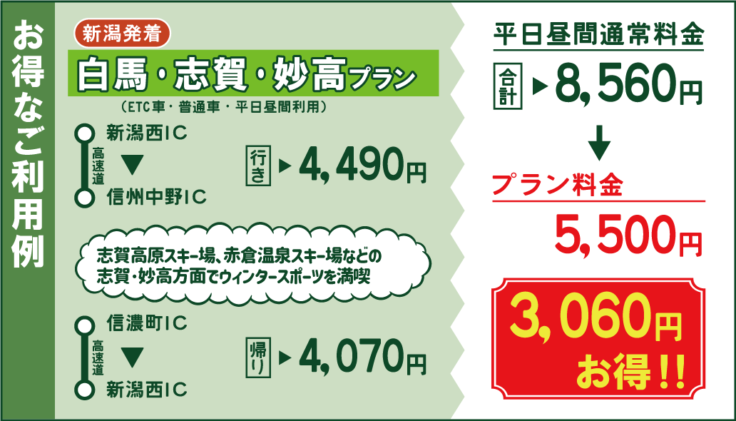 | 新潟発着 | 軽自動車等 | 4,400円 |