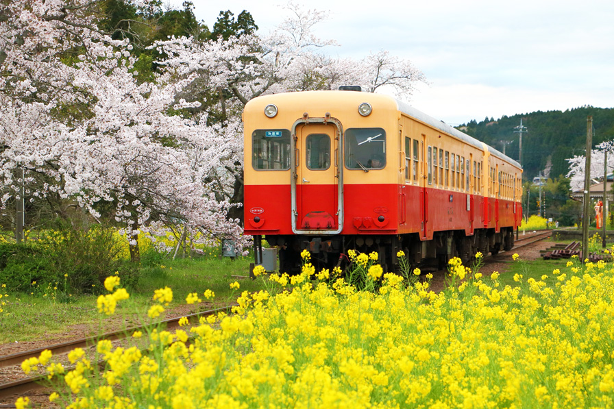 小湊鐵道 養老渓谷駅にてご利用当日に列車ご利用で、駐車場(1日500円)無料サービスが受けられます。