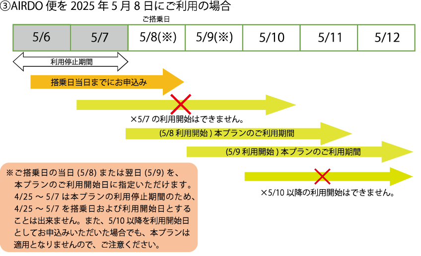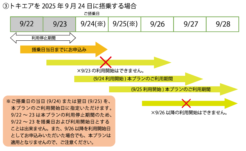 なお、お申込みの際、本プランのご利用開始日を搭乗日の当日または翌日としてください。