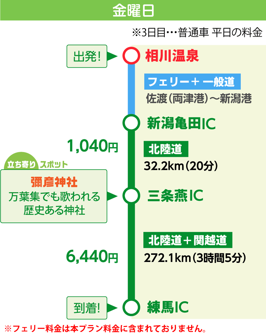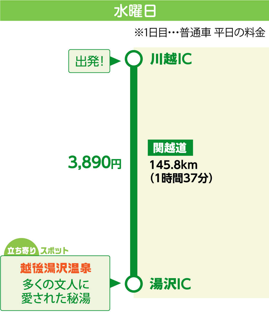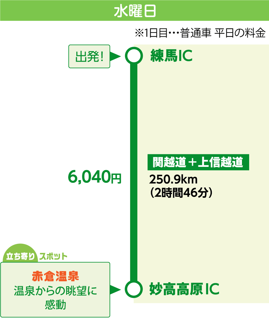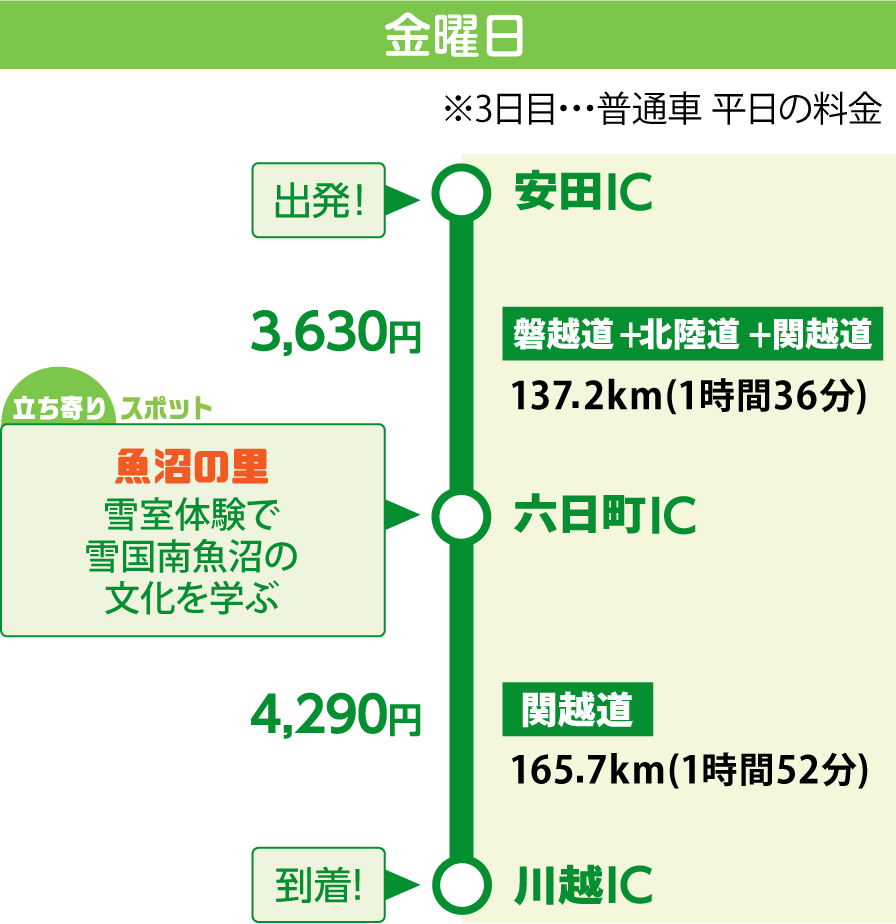 周遊エリア内のICから高速道路に乗り、上記出発エリア内のICで降りる