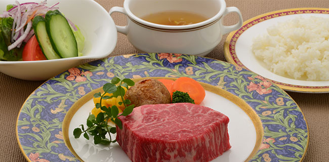 レストランにてお食事された方に天然水のペットボトル1本サービス