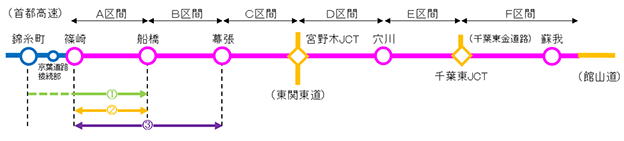 京葉道路(篠崎IC~船橋IC)料金所・ETCアンテナ位置図