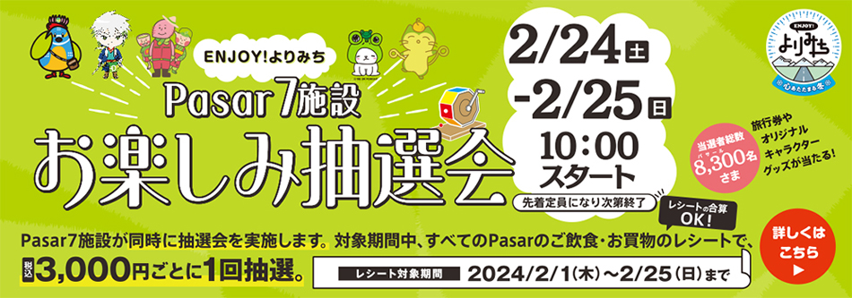 「Pasar」はパーキングエリアの「PA」サービスエリアの「SA」リラクゼーションの頭文字を意味する「R」。SA・PAでゆったりとくつろいだ時間を過ごしてほしいという想いから「Pasar」は生まれました。たくさんのショップやくつろげる空間をご用意してお待ちしています。