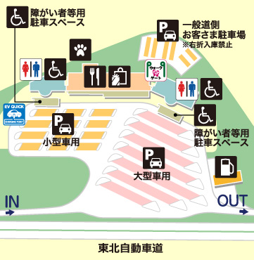 ※12/26~1/4 開設時間 8:00~20:00 - スマートIC 終日利用可 / 車長12.0m以下 / 入口利用の場合GSのみ施設利用可、出口利用の場合GS以外の施設利用可