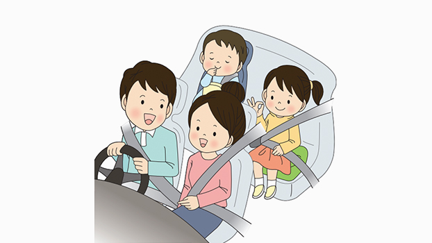 シートベルトは、2次衝突や車外への放出を防止します。忘れずに、全席シートベルトを着用しましょう。