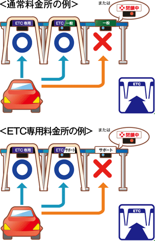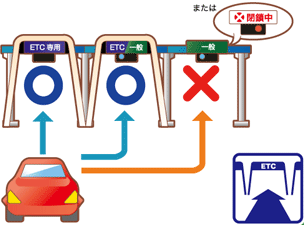 進入前にETC利用可能なレーンを確認(誤進入に注意)してください。