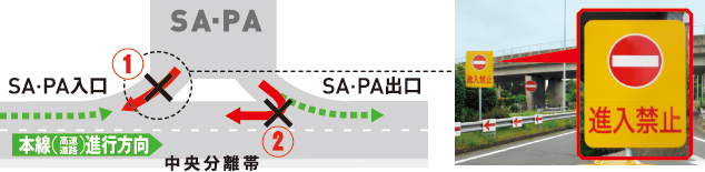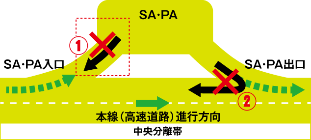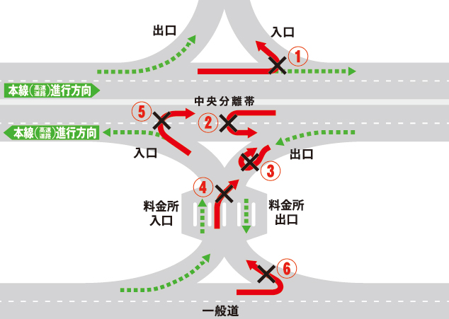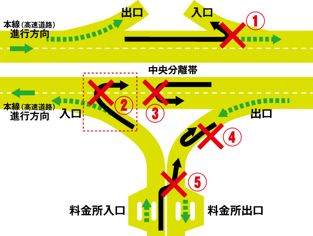 高速道路は一方通行。Uターン、バックは厳禁です。