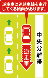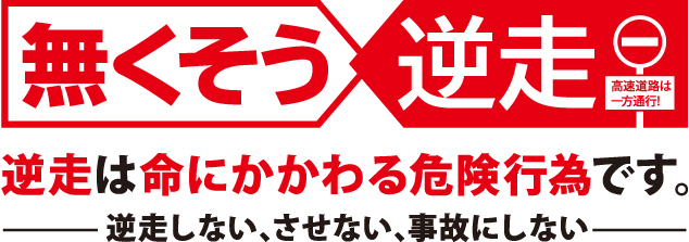 逆走行為は第三者を巻き込んだ悲惨な事故につながります。絶対におやめください。