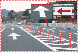 | 対策: | 路面標示や矢印板で進行方向を明示しています |