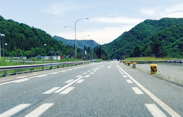 西山IC通過後のトンネルから大積PAの分合流部まで