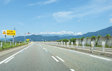 長い下り坂が続いて速度超過した状態で、車線変更を行ったことによるハンドル操作不適や、わき見運転によって衝突事故が発生しやすい。