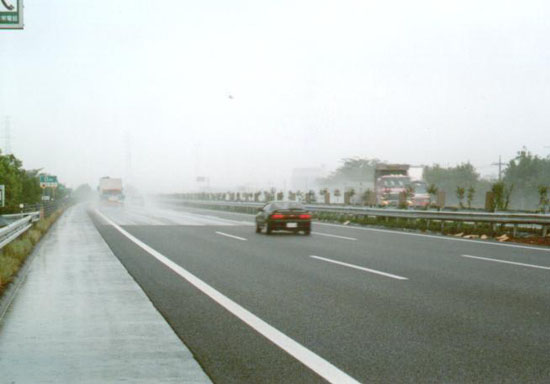下の写真、手前は見通しがいいのに、奥側はずいぶんと水しぶきが上がっていて、前が見ずらくなっていますよね。