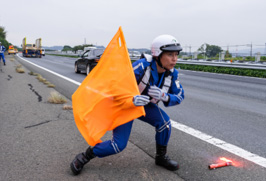 そして三つ目が事故処理。交通事故が起こると現場に急行。二次的な事故が起きないように車線規制を行ったり、状況によってはけが人の救出などを行うこともあります。