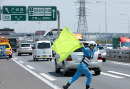 この落下物の回収作業、時速100キロメートルで走るクルマの合間を縫って行うので、ちょっとタイミングがずれれば命にかかわる非常に危険な仕事なんです。それだけに、日頃の訓練と判断力が重要な仕事なんです。