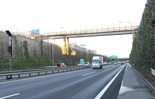 例えば、京葉道路 穴川IC~貝塚ICなどの壁面緑化には「ナツヅタ」を使っています。「ナツヅタ」は、生長が早く、吸盤で壁を這いあがる特徴を持っているので、壁面緑化に適しています。