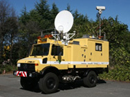 地震や大雨などで高速道路が壊れたとき、壊れた場所に行って、衛星通信で音や映像を配信します。この車から送られてくる映像を基にして、復旧方法を検討します。