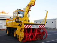 雪がたくさん降る地域では、除雪車が雪かきした雪が路肩に溜まってしまいます。このロータリー除雪車は、前についた回転翼を勢いよく回転させ、溜まった雪を切り崩して吸い込み、安全なところへ飛ばします。
