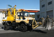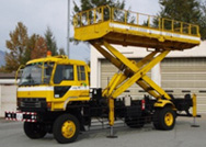 トンネル内の照明や換気装置などの設備の点検や清掃、補修などに使用します。最大で5m以上の高さまで荷台を昇降させて作業を行うことができます。
