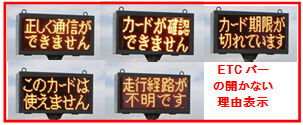 これまでのETCレーンでは、バーが開かない時には、路側表示器に「正しく通信ができません」としか表示されませんでした。