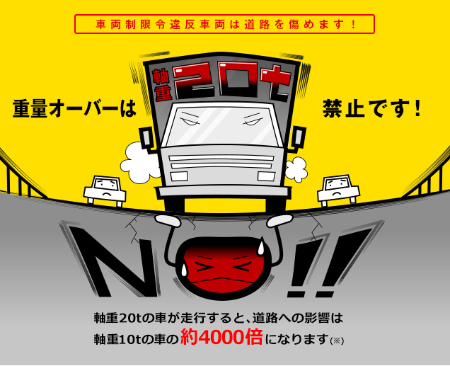 車両制限令違反車両は道路を傷めますのイメージ画像