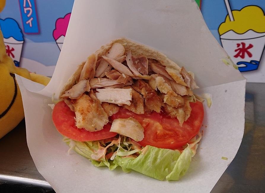 このドーンとしたお肉を切り取って野菜と合わせてソースをかける。そしてピタパンにはさむ。完成!!